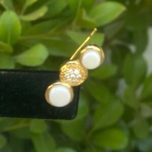 NWOT New Marcia Moran White/Gold Pave Set Rhinestone Ear Climber Earrings 3/4"