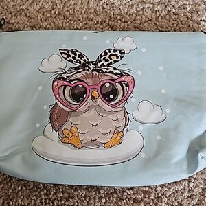 NWOT Adorable Owl cosmetic/ toiletry bag with zippered closure.