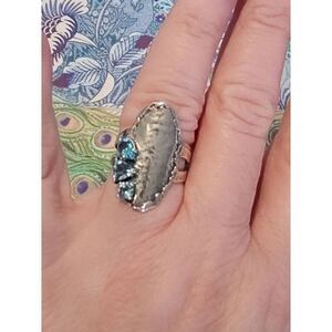 NWOT~PAZ CREATIONS 925 Sterling Handcrafted Oblong Oval Triple Blue Topaz Ring 8