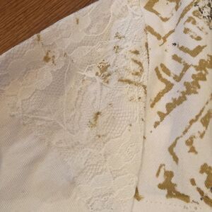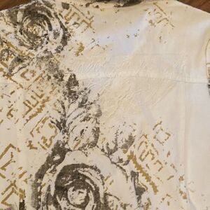 NWOT Parsley & Sage button down shirt, or could be a jacket, with some lace in different areas, call, metal buttons, gray, black, gold, and white M (775