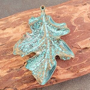 Super cool patineaed brass leaf pendant with hematite crystal veining!