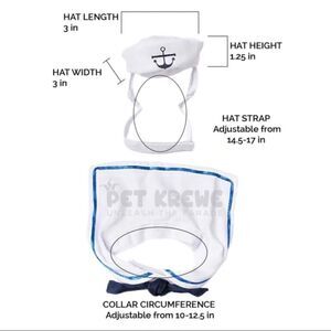 NWOT Pet Krewe Doggie Sailor Collar and Hat Sz S