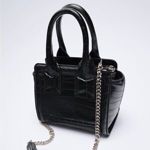 Mini/Medium Crossbody Purse, Versatile Design Removable Strap with silver detailing and zip closure. One Interior card slot Top Handles, sleek design