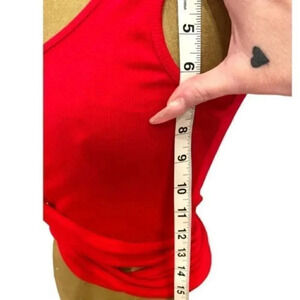 NWOT RIBBED HALF BUTTON TIE AROUND CROP TOP RED, O/S FITS UP TO 36DDD