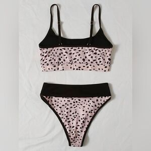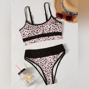 NWOT ROMWE Leopard Colorblock High Waist Bikini Swimsuit Women’s Large
