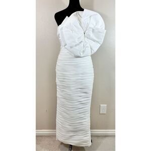 NWOT Rachel Gilbert Bright White Evana Big Flower Fitted Dress Women’s