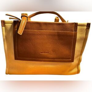 This elegant tote bag features a stylish combination of brown and cream colors, perfect for any occasion. Its sleek design and durable material make it a must-have accessory.
