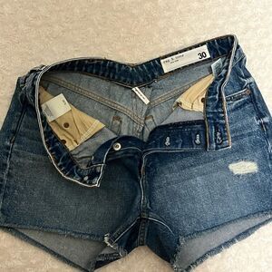 100% cotton with a medium weight to them with just enough stretch to move as you do.