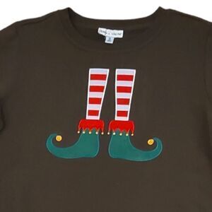 Rebecca Malone Dark Brown Sweatershirt with cute Elf Feet Appliqued on the front.