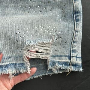 NWOT RM Rebecca Minkoff Women's Sz 4 Crystal Embellished Distressed Denim Shorts NEW