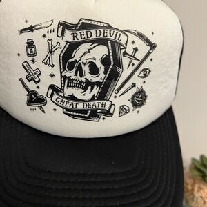 NWOT Red Devil Cheat Death SnapBack trucker hat.
