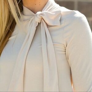 Red Lolly cream top with neck tie and banded hem. Armpit-to-armpit 23”, sleeve 25” and length 27”. Brand new and never worn!