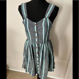 Lightweight with durable construction. Slim straps with sleeveless construction. Full frontal button down closure. Fabric blend for super soft feel. 70% cotton, 30% linen.