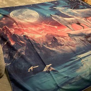 Brand New Tapestry Wolf With Moon Blue / Light Blue / Pink / Purple / Gray In Color 59X 50 In Size