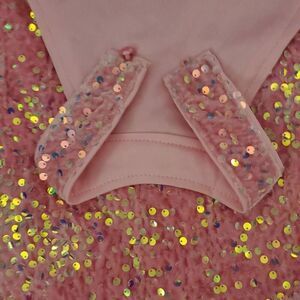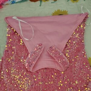 This dress is just beautiful has never been worn except to try on I bought it for my granddaughter to wear to the homecoming Downs but then they said that it was too short and it was just too much trouble to return it is very cute comes to write above the name in attaches at the neck with a button.