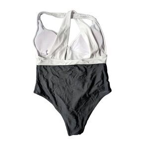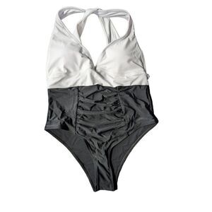 NWOT SHEIN Two Tone Black and White Halter One Piece Swimsuit Women's Large