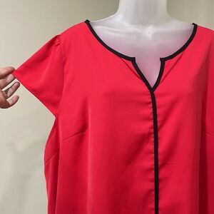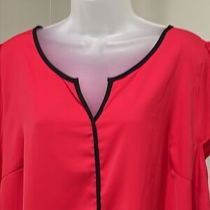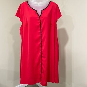 This cute dress is red with black trim. It is lightweight and soft. Perfect for those warm summer days, a vacation to the beach or on a cruise. NWOT.