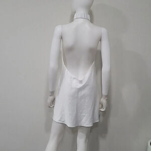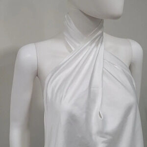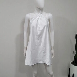 Our best selling halter maxi is now in mini length! This white mini is cut on the bias to give that perfect slip draping we're all looking for. The top softly wraps around your neck for a flattering high neck and leaves a dramatic open back. Beyond chic for a bridal shower and a new go-to for special occasions and events!Luxe Satin -100% Polyester