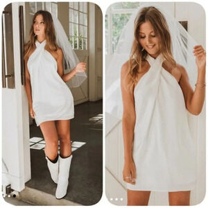 NWOT SHOW ME Your MuMu Jasmine Halter Mini Dress in Ivory Luxe Satin Sz S