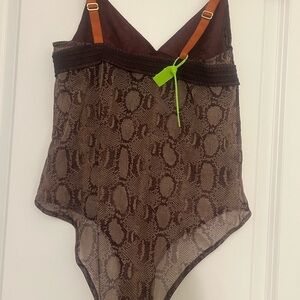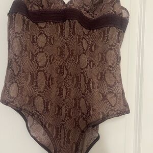 NWOT-STELLA MCCARTNEY Aubergine & Beige Sheer Python Print Lingerie Bodysuit S/M
