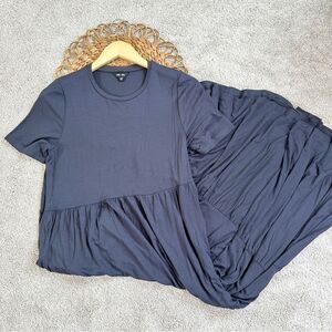 NWOT Saint+Sofia Greenwich Asymmetric Short Sleeve Maxi Dress Flowy Navy