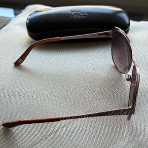 NWOT Saks Fifth Ave rose gold and black sunglasses. Striated design on lens top and arm. Lenses are rose colored. Original Hard Case included.