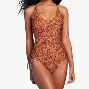 NWOT Shade & Shore One Piece Side Tie Plunge Leopard Print Swimsuit