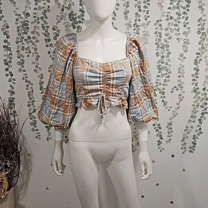 Sunny days are calling, and you need to answer them in this sweet plaid crop top! Adjustable drawstring allows you to customize the amount of skin you want to show. Ruffled trim and poofy sleeves kick this feminine fit up a notch, while a smocked back ensures the perfect fit. Step out in style paired with Mumu denim and your favorite booties.