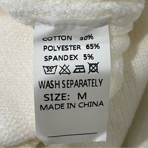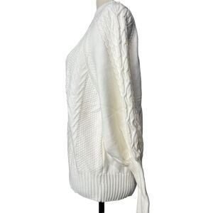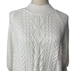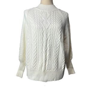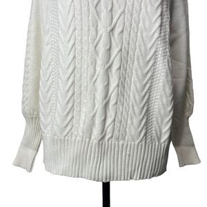 NWOT Solid White Cable Knit Long Balloon Sleeve Mock Turtle Neck Sweater size M