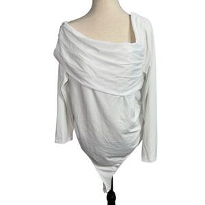 NWOT Solid White long Sleeve One Shoulder bodysuit size 3X overlay Top Dressy