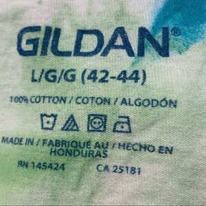 Stop Hate tie dye v-neck t-shirt with overall stretch. Armpit-to-armpit 22”, sleeve 7” and length 28”.