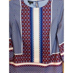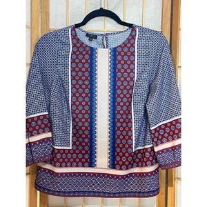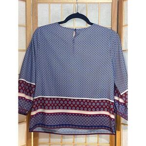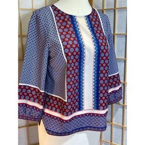 Beautiful small top from Talbots- tag reads P. New without tags. Floral and retro pattern. 3/4 sleeves. 100% polyester. Machine washable. Made in China. Excellent condition. Nonsmoking home.