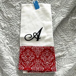 NWOT red and white tea towel with black letter "A" accent. Smoke free, pet friendly home.