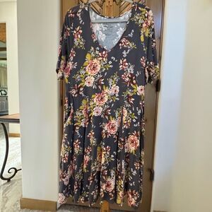 Torrid floral SUPER SOFT knit rayon v-neck short sleeve knee-length floral dress