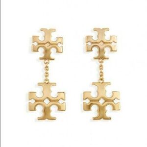 NWOT Tory Burch Gold Double Logo Dangle Earrings