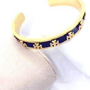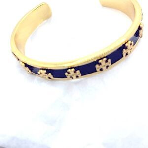 NWOT Tory Burch Gold Logo , Black Enamel Cuff Bracelet