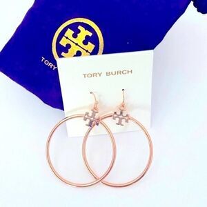 NWOT Tory Burch Rose Gold T Logo Hoop Earrings