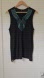 Black sleeveless blouse with tribal pattern around neck. Bottom has a sheer section.