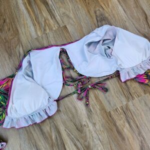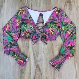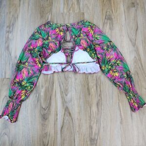 ⏭️NWOT Tropical Floral Tie Crop Long Sleeve Swim Top Medium