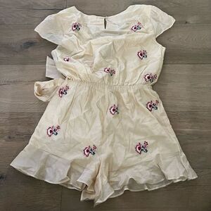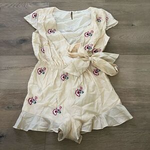 When the forecast calls for sunny skies with a full day of fun, toss on the Ashby Romper. Crafted from a woven poly featuring a romantic crossover center with belted waist and flutter accents, it's stylish yet remarkable relaxed for daytime adventures.