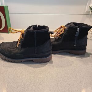 UGG boots Black Lace up with side zipper Fleece inside New without tags