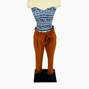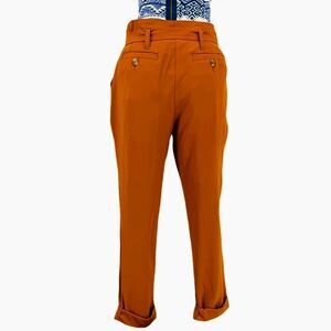 Kimchi Blue by Urban Outfitters. High waisted cropped trousers in rust. Paperbag waist pleating. Tacked ankle cuffs. Soft and breathable. Can be dressed up or down. Pairs best with tucked in top. Smoke-free and pet-free home.