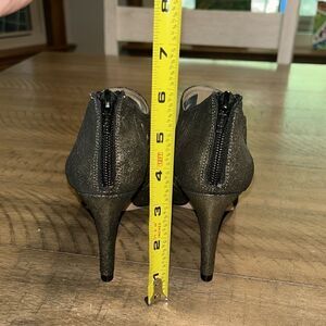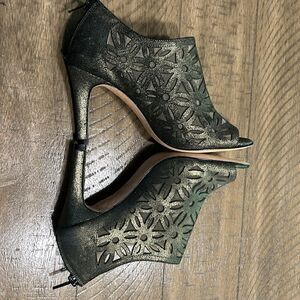 New without tags or box, never worn. Smoke free. Size 5, leather sole. Zip back. Flower detail with mesh behind. Peep toe.