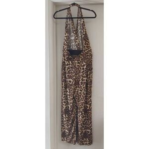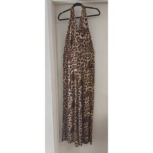 NWOT~VENUS Silky Leopard Print Front Slit Halter Style Jumpsuit Sz M