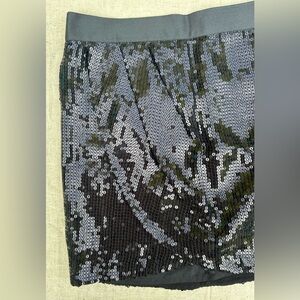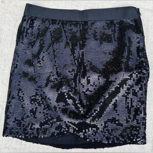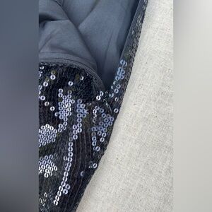 NWOT🌟VINTAGE🌟black sequined mini skirt overlapping draped front side zip…