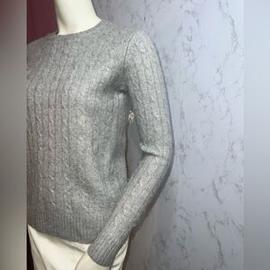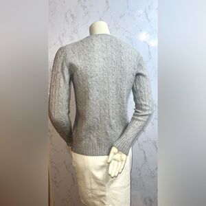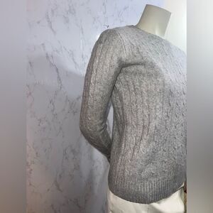 Stay cozy and stylish with this elegant gray cable knit sweater. Perfect for any occasion.