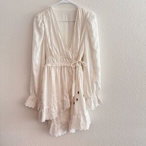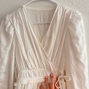 NWOT White Wrap Dress with Embroidered Details - S/M