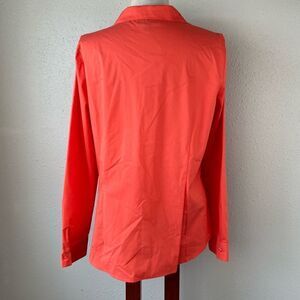 Sharp button down shirt featuring a fitted look and measuring 21 inches armpit to armpit laying flat, 19 inches at the waist and 28 inches in length.