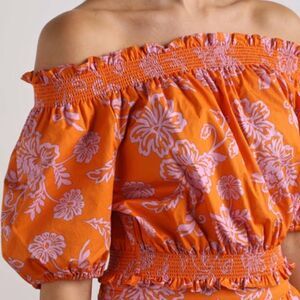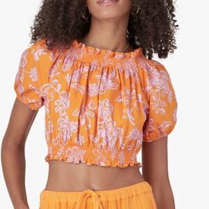 The Xirena Elle Top was made with a tropical getaway in mind. This cropped top features a floral print with an off the shoulder design and smocked detailing. We love it paired with the matching skirt for a chic look.