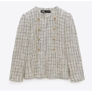 NWOT ZARA TEXTURED BLAZER ECRU Cream BLACK size L